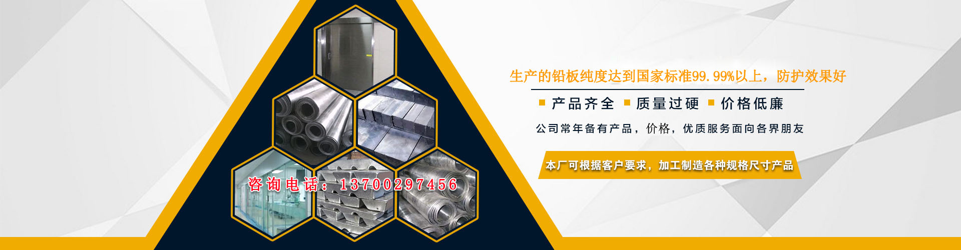 歡迎來到西安鑫順豐鋼鐵有限責任公司!公司主營:鉛板、鉛門、硫酸鋇砂、鉛錠、鉛磚、鉛玻璃、硫酸鋇。